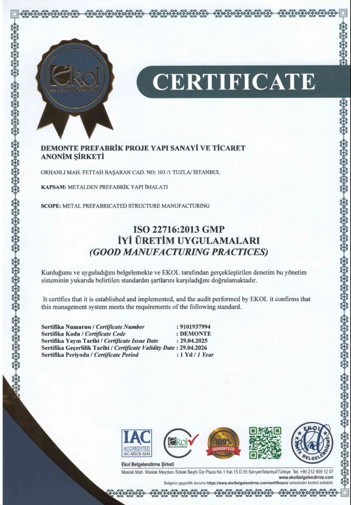 ISO 227162013 (GMP)