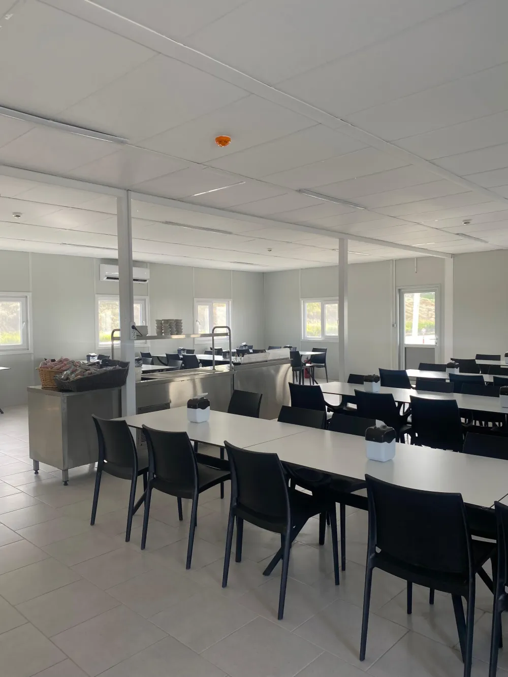 Modern mimari anlayışla tasarlanan yemekhane binaları, geniş kullanım alanları, yüksek yalıtım performansı ve dayanıklı yapısıyla hem estetik hem de fonksiyonel bir çözüm sunmaktadır.