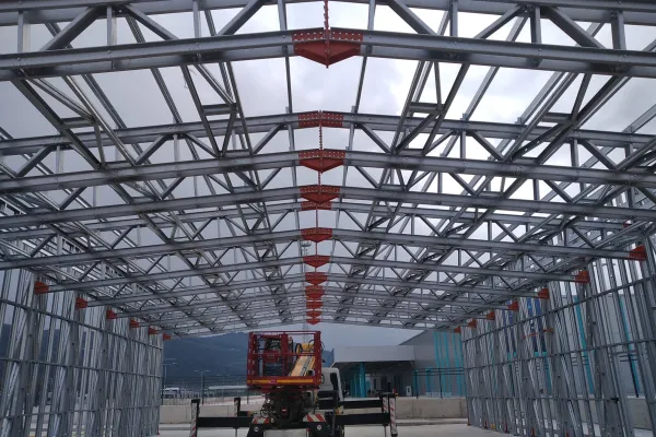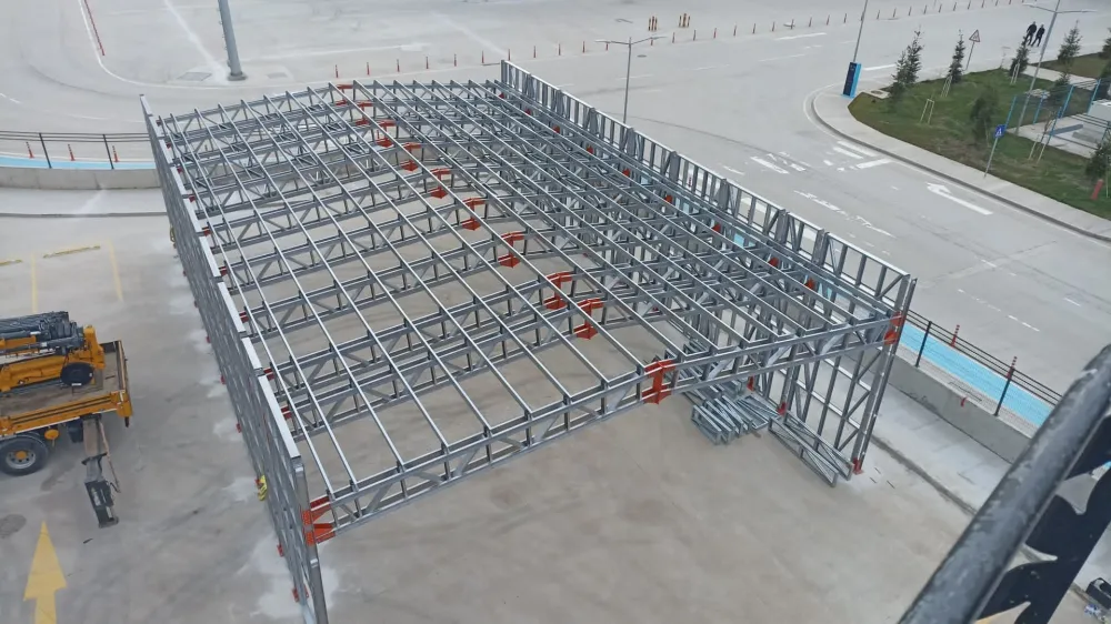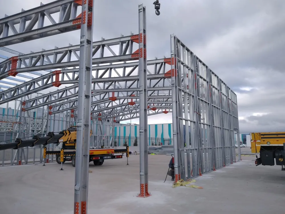 450 m² alana sahip Migros Binası Gemlik Projesi, geniş açıklıkları ve yüksek taşıma kapasitesiyle endüstriyel ve ticari alanlara yönelik hafif çelik yapı çözümlerinin başarılı bir örneğidir.