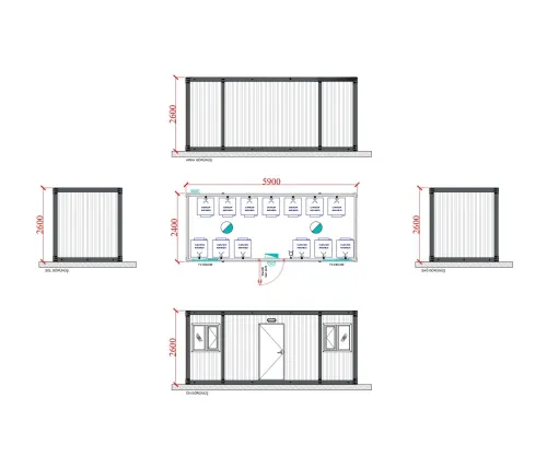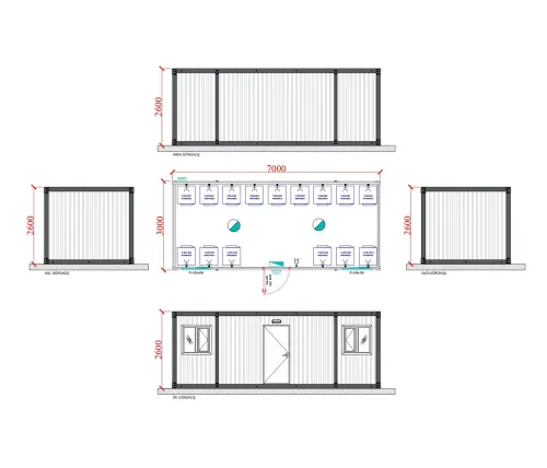 Daha yoğun personel kapasitesine sahip projeler için tasarlanan 21 m² konteyner çamaşırhane binaları, geniş iç hacmi sayesinde aynı anda birden fazla çamaşır ünitesinin kullanımına olanak tanır. Su ve elektrik tesisatı hazır şekilde entegre edilen bu yapılar; dayanıklı malzeme seçimi, kolay temizlenebilir yüzeyler ve uzun ömürlü kullanım avantajıyla öne çıkar. Modüler yapısı sayesinde şantiye koşullarına uygun şekilde özelleştirilebilen 21 m² konteyner çamaşırhane, hem hijyen hem de işlevsellik açısından güvenilir bir çözüm sunar.