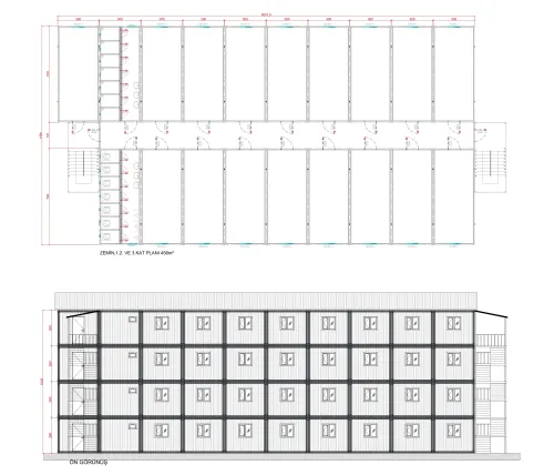 1060 m² Çok Katlı Konteyner İşçi Yatakhane Binası