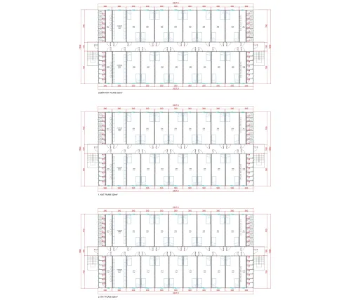 1062 m² çok katlı konteyner işçi yatakhaneleri, yüksek sayıda işçinin aynı anda konaklayabileceği şekilde planlanır. Güvenli merdiven ve koridor entegrasyonlarıyla düzenli dolaşım sağlar; dayanıklı çelik taşıyıcı sistemi ile uzun yıllar kullanılabilecek ekonomik bir çözüm sunar.