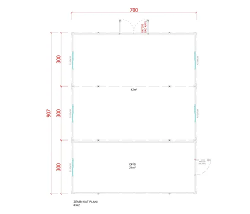 63 m² Tek Katlı Konteyner Ofis Binası