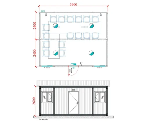 28 m² tek katlı konteyner ofis, küçük ölçekli şantiyeler ve sınırlı personel kullanımı için pratik bir çözüm sunar. Standart 3x7 metre ölçülerinden türetilen bu kompakt yapı, saha ofisi, güvenlik noktası veya bireysel çalışma alanı olarak değerlendirilebilir. Masa yerleşimi, arşiv bölümü ve temel donatılarla fonksiyonel hale getirilen bu konteyner, hızlı kurulumu ve taşınabilirliği sayesinde kısa süreli veya mobil projeler için ideal bir alternatiftir.