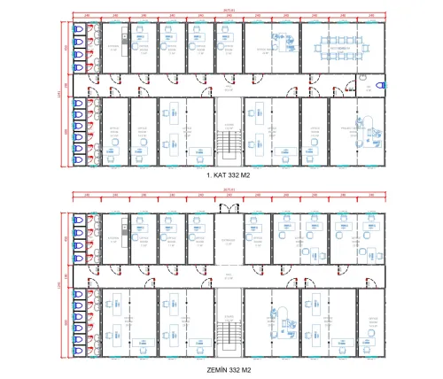 546 m² çok katlı konteyner ofis, büyük ölçekli şantiyelerde geniş ekiplerin yönetim ve koordinasyonunu kolaylaştıracak şekilde tasarlanır. Birden fazla kat üzerinde planlanan ofisler; arşiv odaları, toplantı salonları ve dinlenme alanlarıyla profesyonel bir çalışma ortamı sunar. Modüler sistem yapısı sayesinde saha ihtiyaçlarına göre özelleştirilebilen bu ofisler, dayanıklılığı ve işlevselliğiyle prestijli bir çözüm haline gelir.