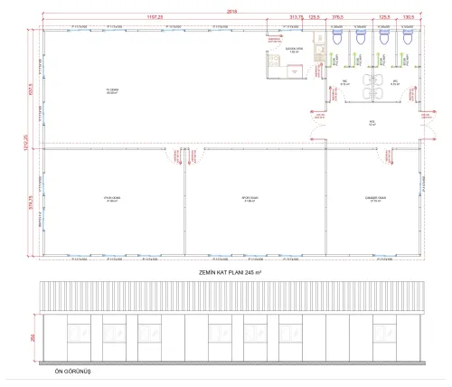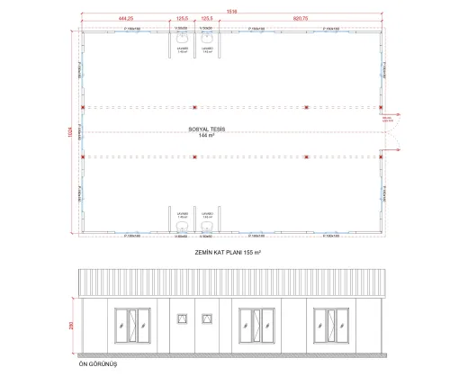 155 metrekarelik bu kompakt sosyal tesis yapısı, küçük ölçekli topluluklar ve kurumlar için ideal bir çözümdür. Toplantı odası, dinlenme alanı ve küçük bir mutfak bölümü gibi temel işlevleri bir arada sunan bu yapı; hızlı kurulumu, düşük işletme maliyeti ve modüler yapısıyla dikkat çeker. Prefabrik sistemin sunduğu esneklik sayesinde gerektiğinde kolayca genişletilebilir ve taşınabilir.